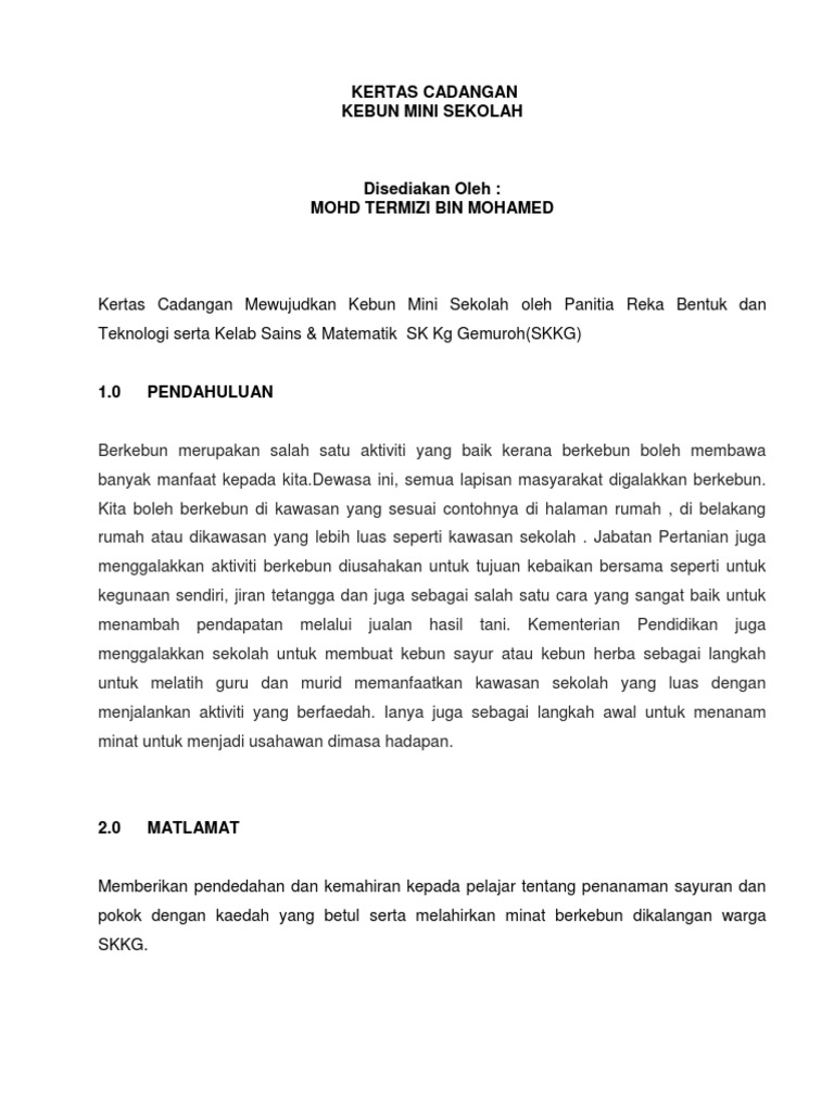 Kertas Cadangan Kebun Mini Skkg Pdf